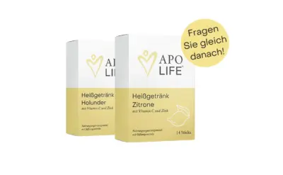 Heißgetränke Zitrone & Holunder - Abwehrkraft mit Geschmack! Die ApoLife Heißgetränke Zitrone & Holunder sind unsere Produkte des Monats ...